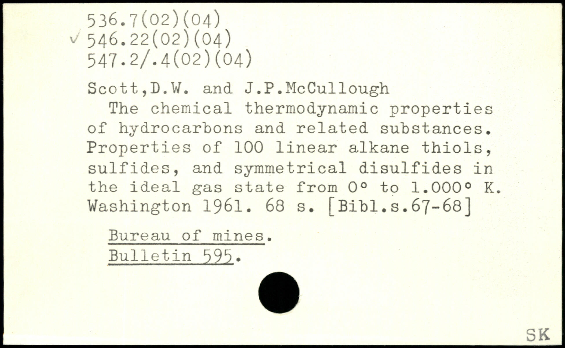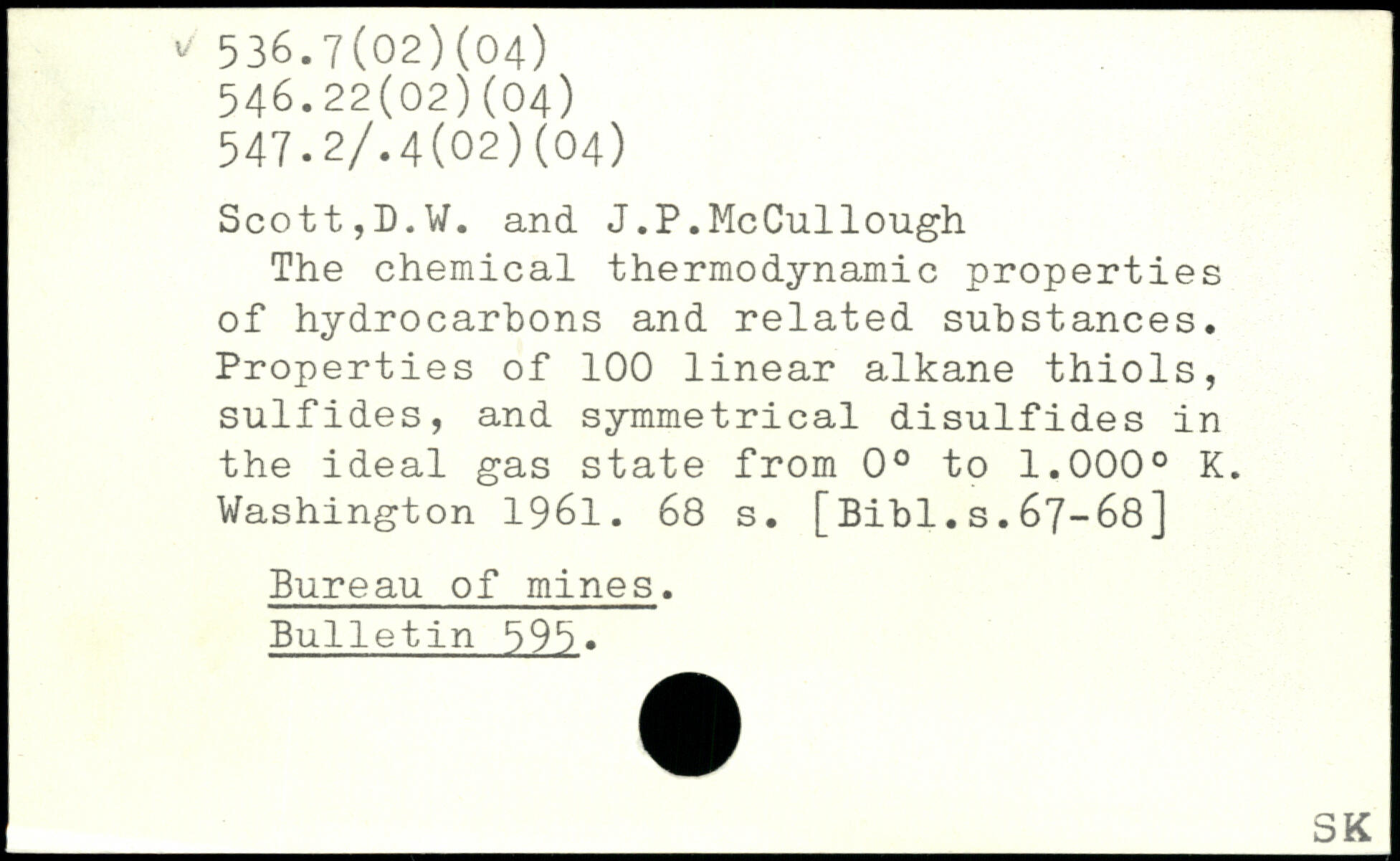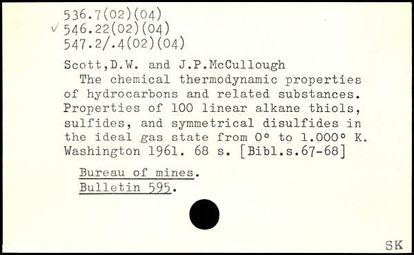The chemical thermodynamic properties of hydrocarbons and related substances. Properties of 100 linear alkane thiols, sulfides, and symmetrical disulfides in the ideal gas state from 0. to 1.000. K.