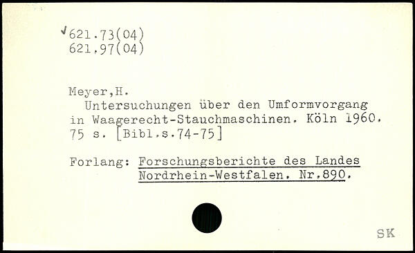 Untersuchungen uber den Umformvorgang in Waagerecht-Stauchmaschinen