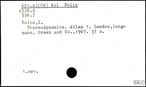 Thermodynamics. Atlas 1. London,Longmans, Green and Co.,19^7.