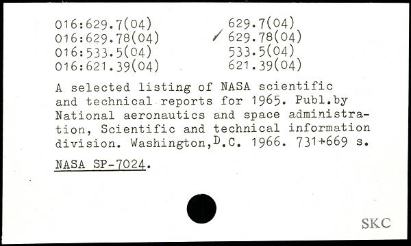 UDK: 016:629.7(04), 016:629.78(04), 016:533.5(04), 533.5(04), 016:621.39(04), 621.39(04)