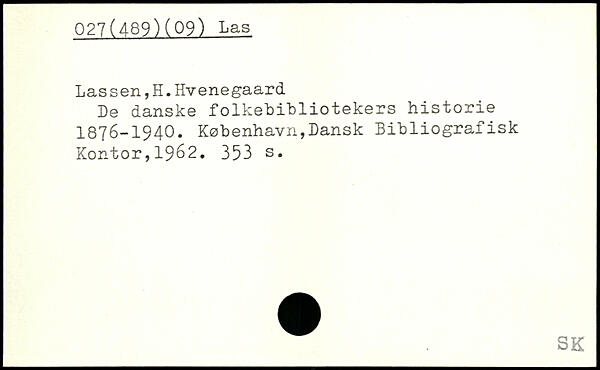 Lassen,H.Hvenegaard De danske folkebibliotekers historie 1876-1940.