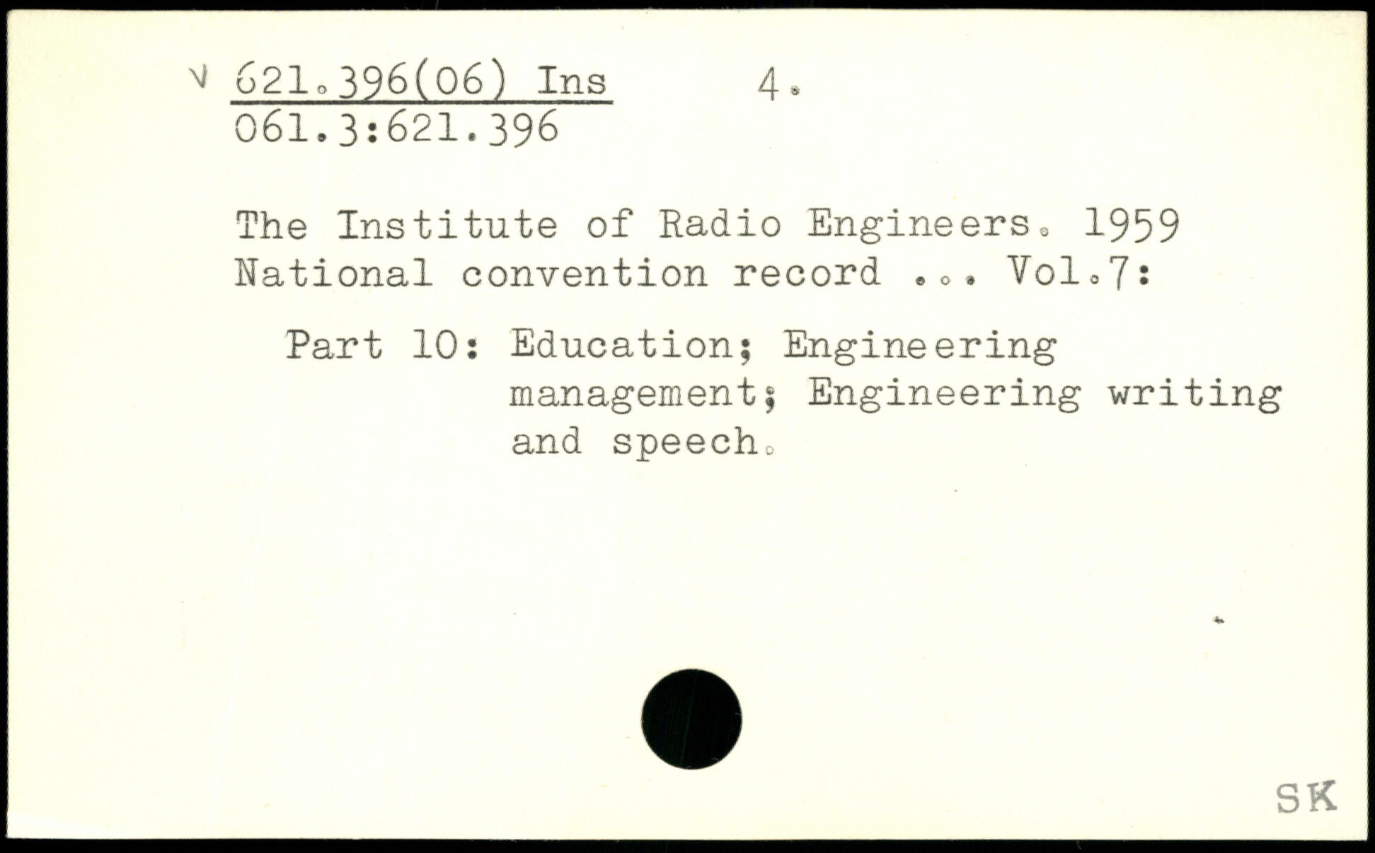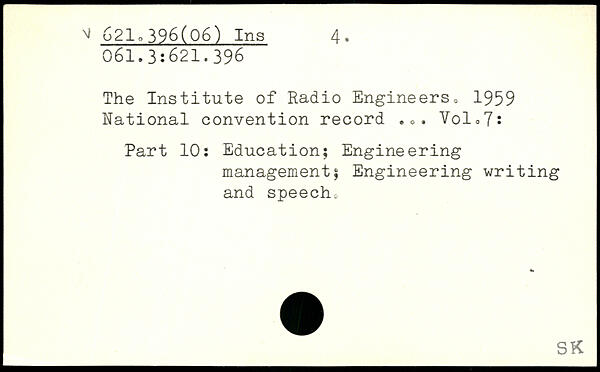 The Institute of Radio Engineersa 1959 National convention record , <>. Volo7: Part 10: Education; Engineering management; Engineering writing and speech