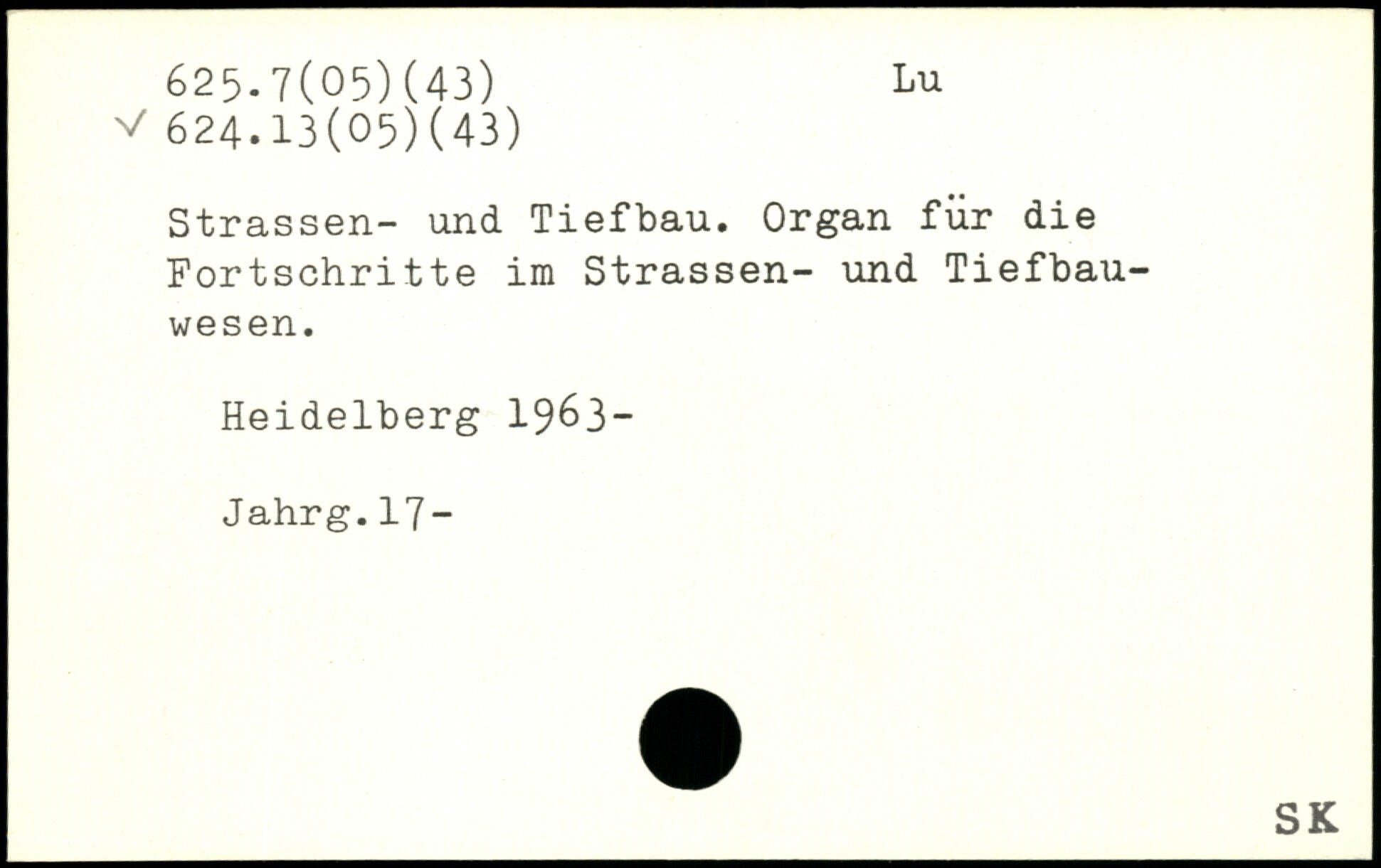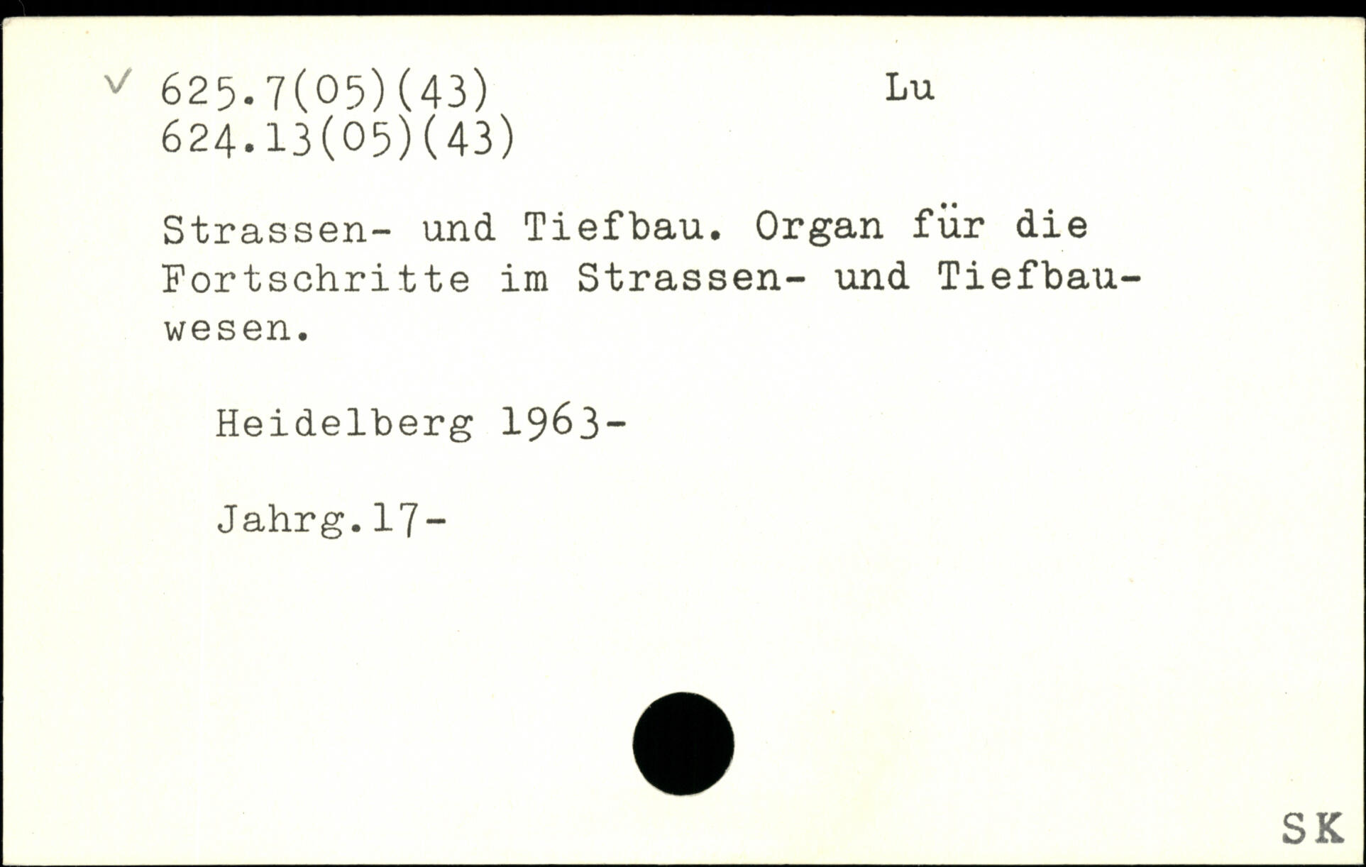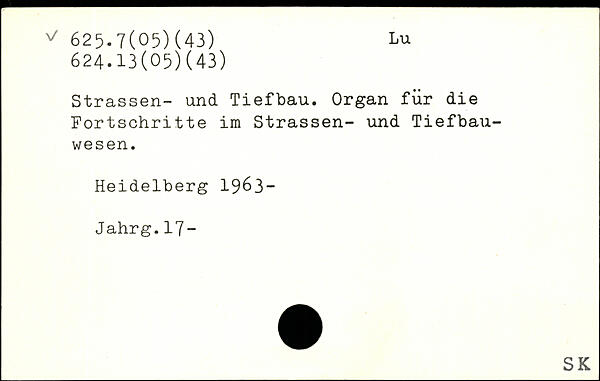 Strassen- und Tiefbau. Organ für die Fortschritte im Strassen- und Tiefbauwesen. Heidelberg 1963-Jahrg.17-