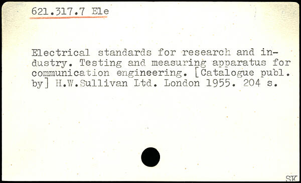 Electrical standards for research and industry. Testing and measuring apparatus for communication engineering. [Catalogue publ. by] H.W.Sullivan Ltd.