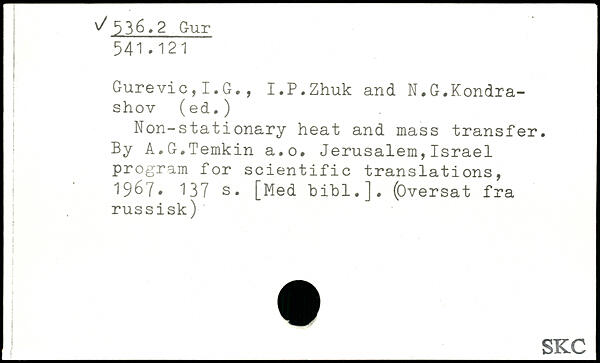 Gurevic,I.G., I.P.Zhuk and N.G.Kondra-j shov (ed.) Non-stationary heat and mass transfer. By A.G.Temkin a.o. Jerusalem,Israel program for scientific translations, 1967.