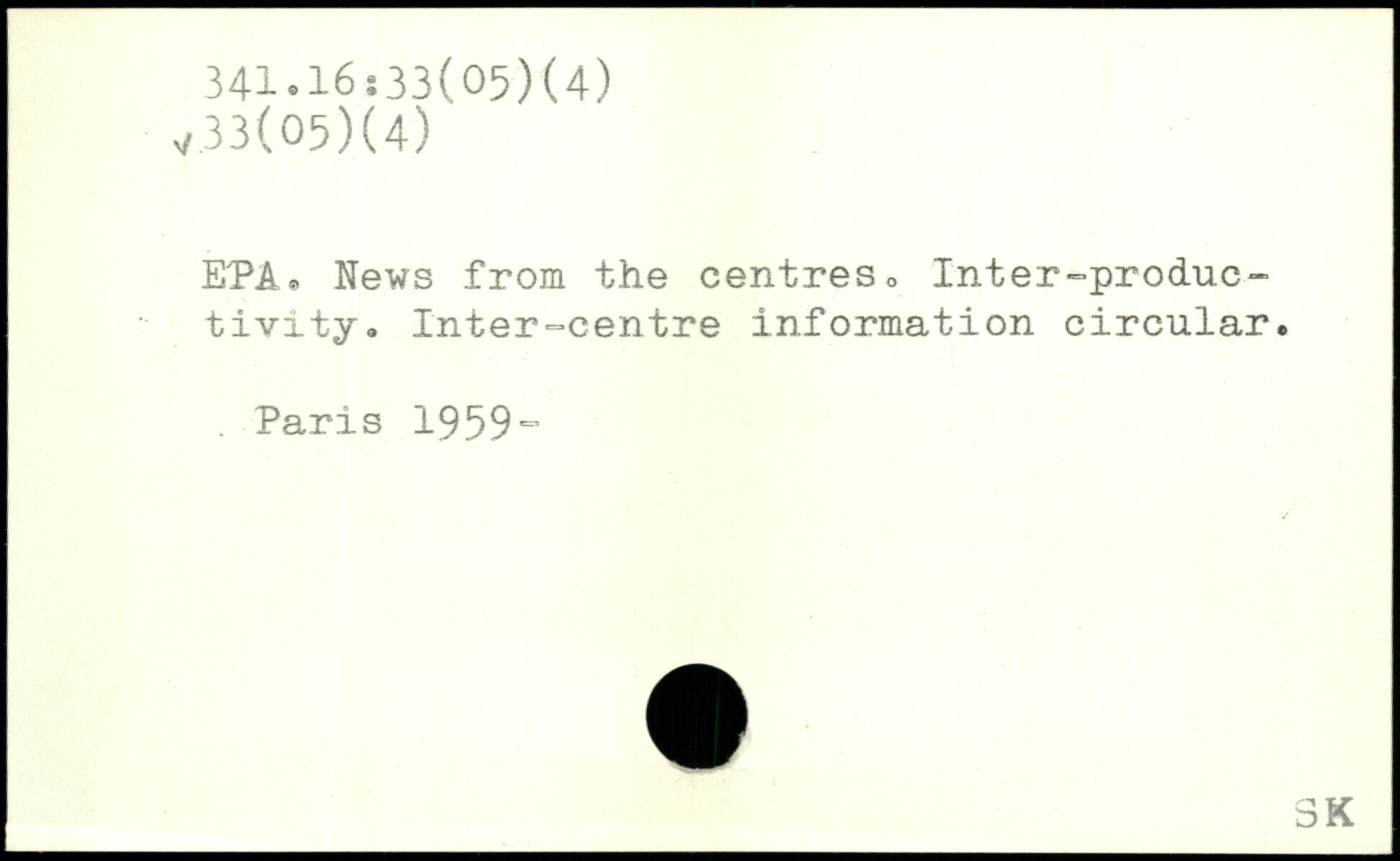 EPA. News from the centres, Inter-productivity. Inter-centre information circular..