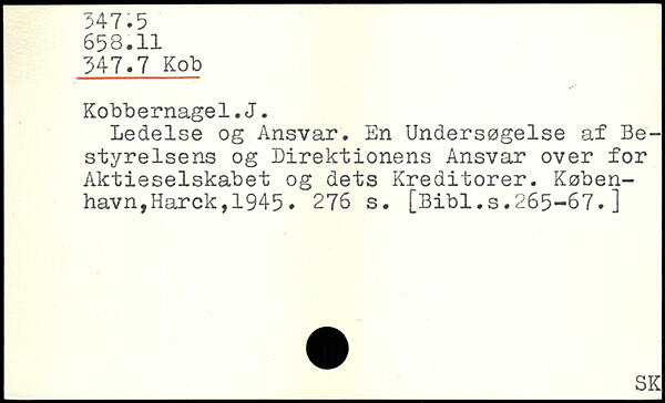 Ledelse og Ansvar. En Undersøgelse af Bestyrelsens og Direktionens Ansvar over for Aktieselskabet og dets Kreditorer. København, Har ck, 194 5.