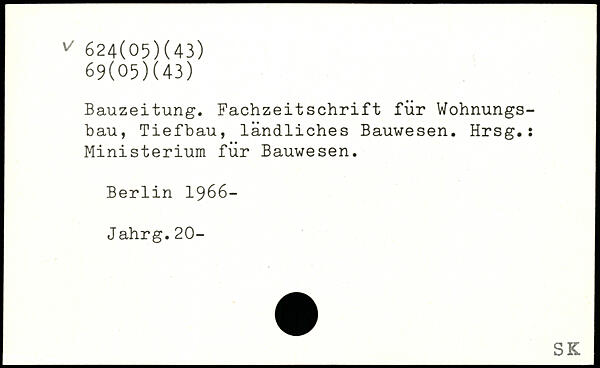 Bauzeitung. Fachzeitschrift für Wohnungsbau, Tiefbau, ländliches Bauwesen. Hrsg.: Ministerium für Bauwesen.