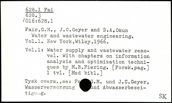 Fair,G.M., J.C.Geyer and D.A.Okun Water and wastewater engineering.