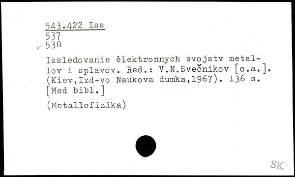 Issledovanie êlektronnych svojstv metal- l lov i splavov. Red.: V.N.Svecnikov [o.a.]. j (Kiev,Izd-vo Naukova dumka,19&7).