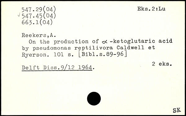 On the production of o< -ketoglutaric acid "by pseudomonas reptilivora Caldwell et Ryerson.