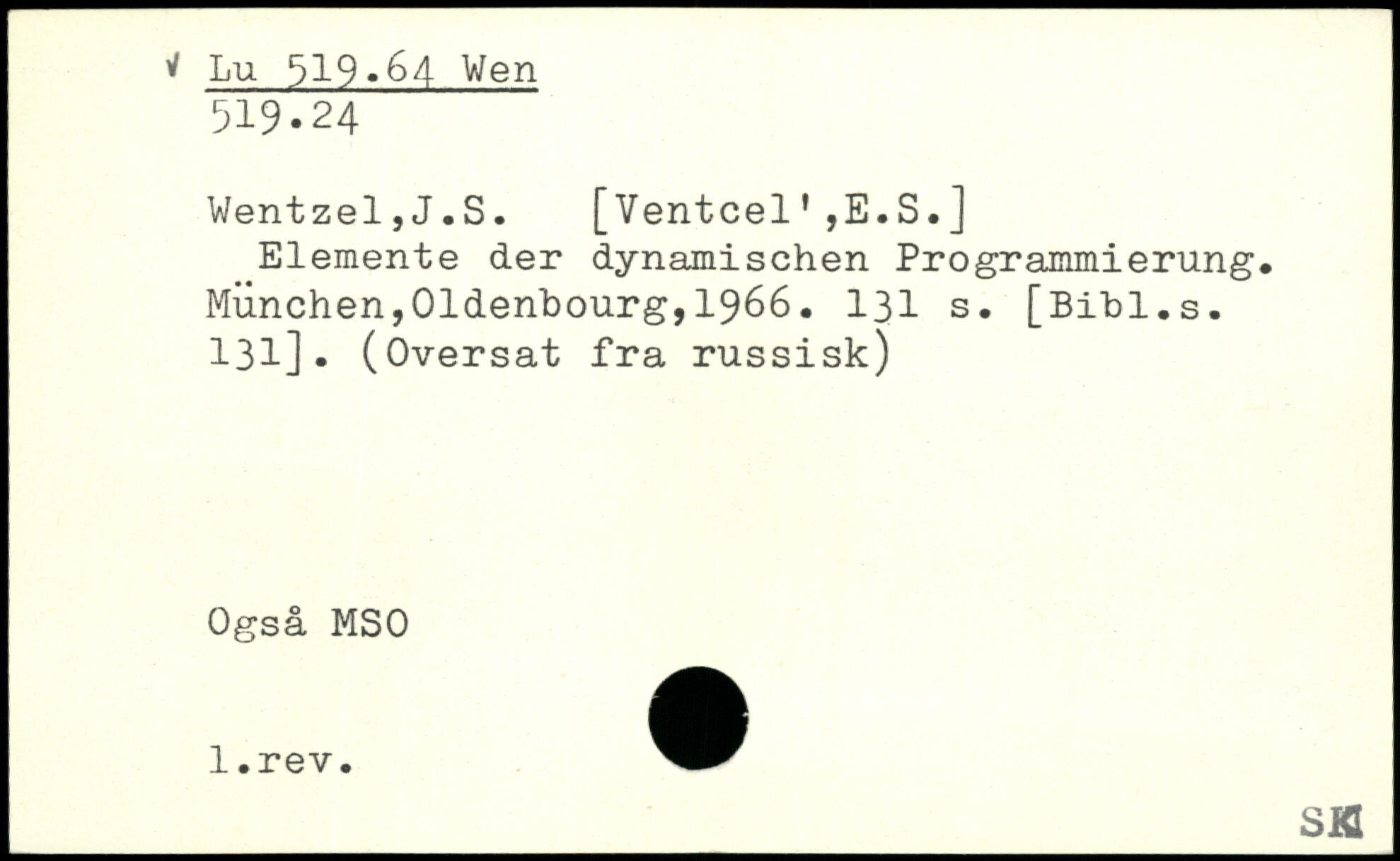WentzeljJ.S. [Ventcel',E.S.J Elemente der dynamischen Programmierung.