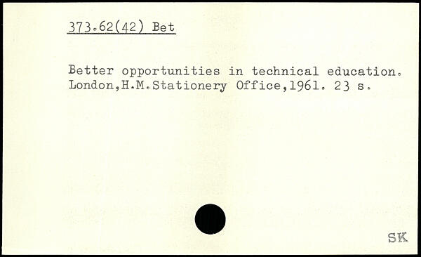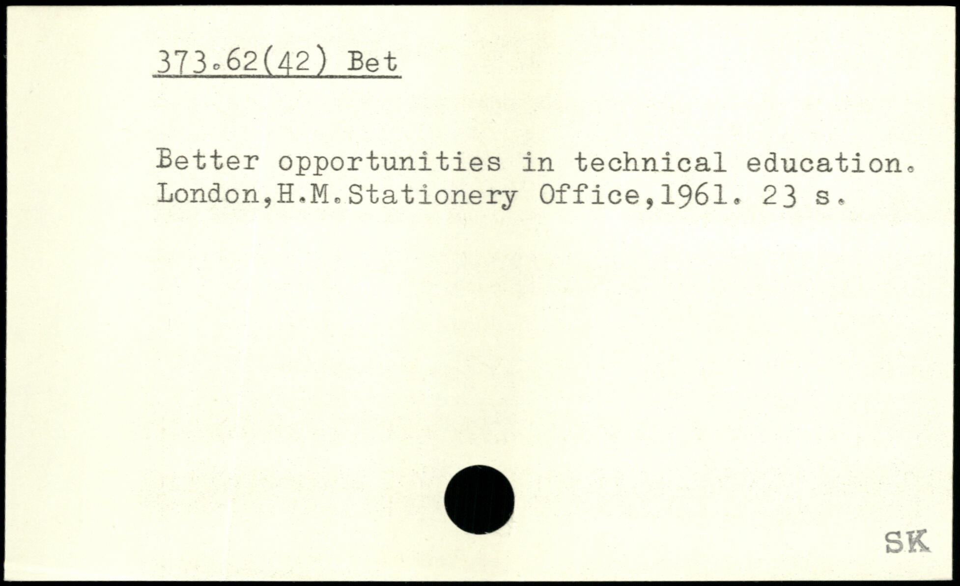 Better opportunities in technical education, London,H.M,Stationery Office,1961.