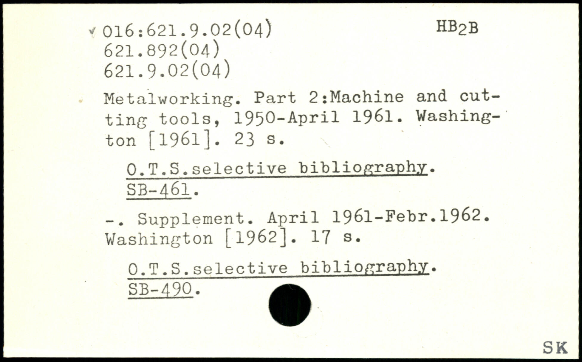 Metalworking. Part 2:Machine and cutting tools, 1950-April 1961.