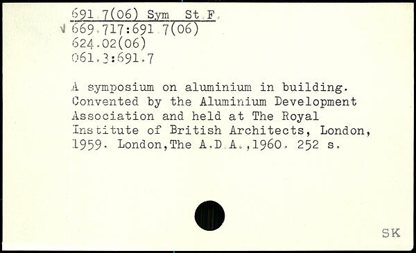 A symposium on aluminium in building. Convented by the Aluminium Development Association and held at The Royal