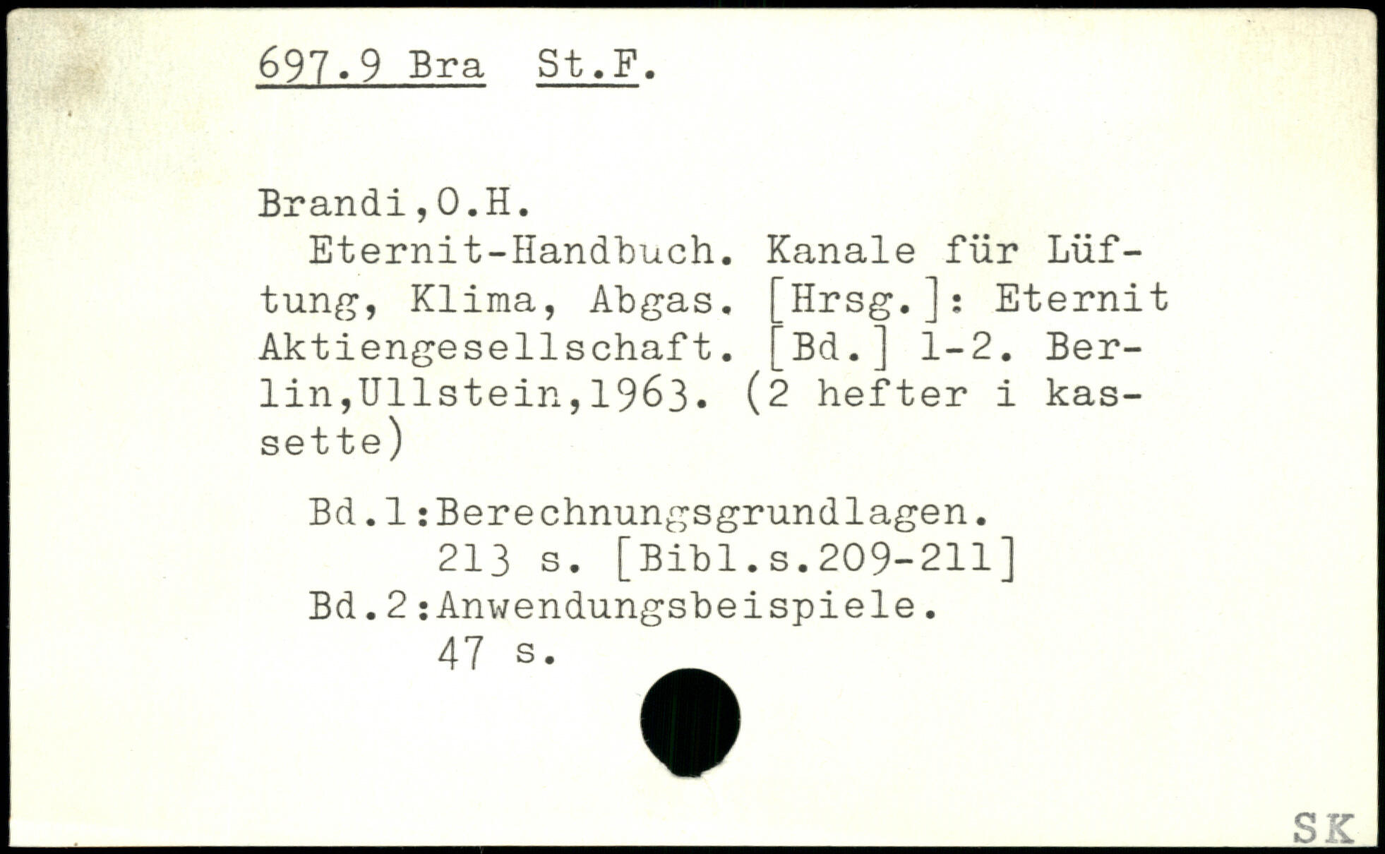 Eternit-Handbuch. Kanäle für Lüftung, Klima, Abgas. [Hrsg.]: Eternit Aktiengesellschaft. [Bd.] 1-2.