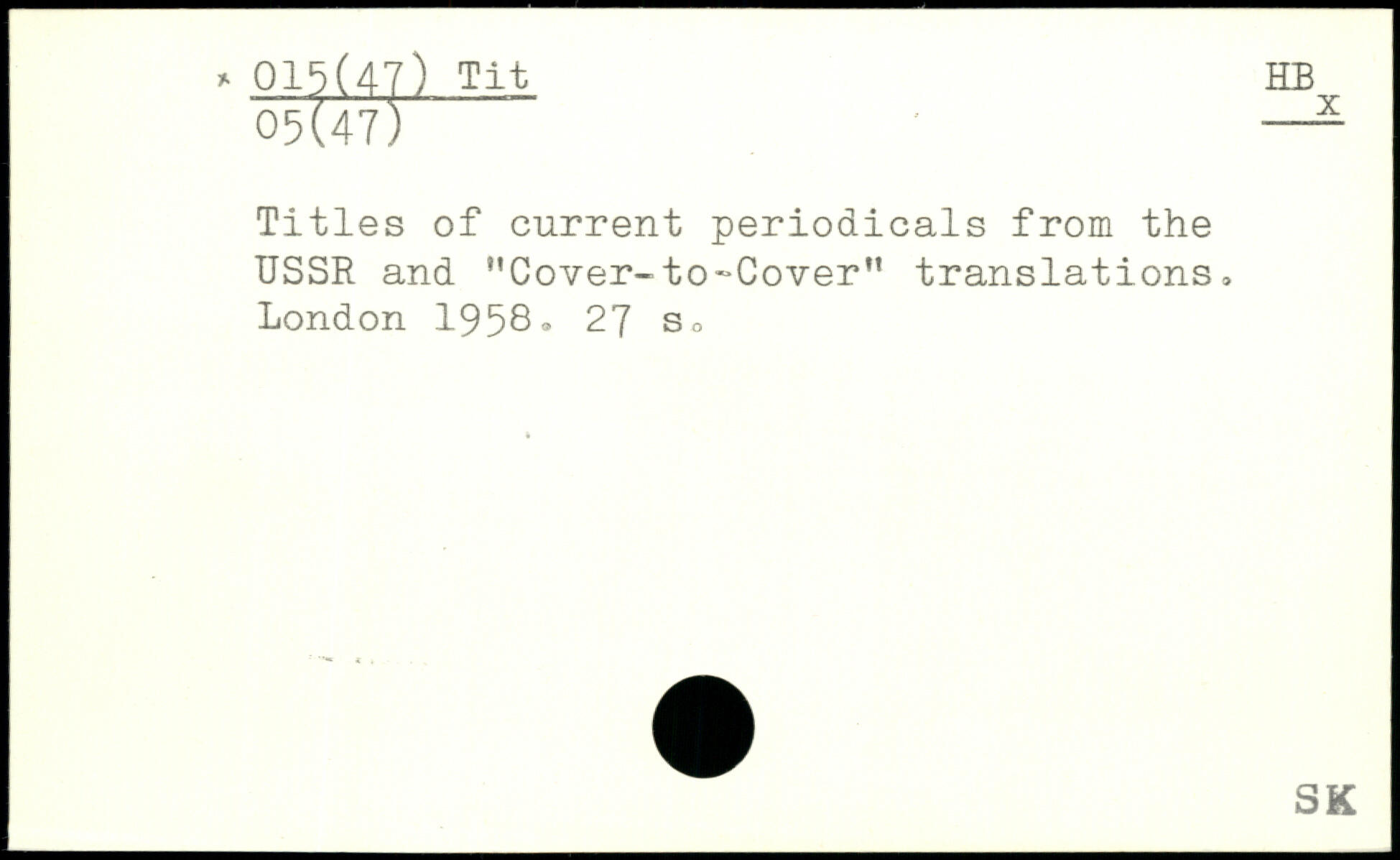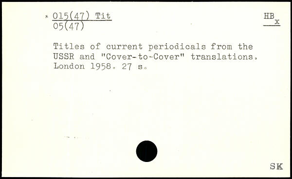 Titles of current periodicals from the USSR and "Cover-to-Cover" translations.