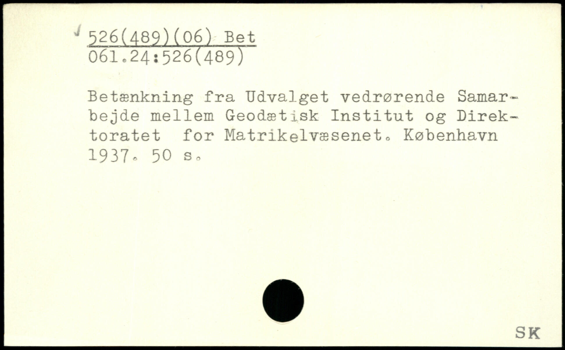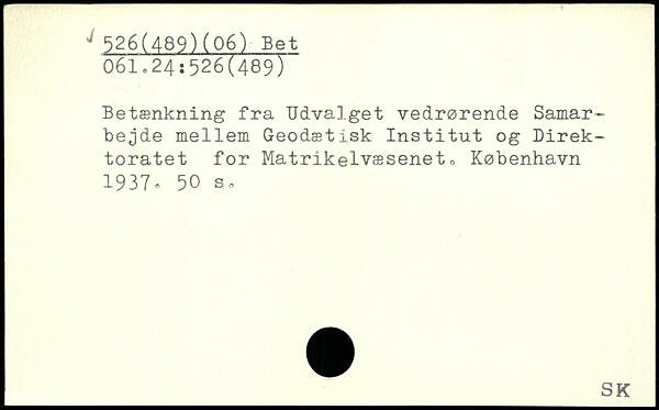 Betænkning fra Udvalget vedrørende Samarbejde mellem Geodætisk Institut og Direktoratet for Matrikelvæsenet o
