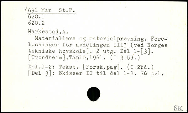 Materiallære og materialprøvning. Fore-lesninger for avdelingen 1113 (ved Norges tekniske høyskole). 2 utg. Del 1-[3].