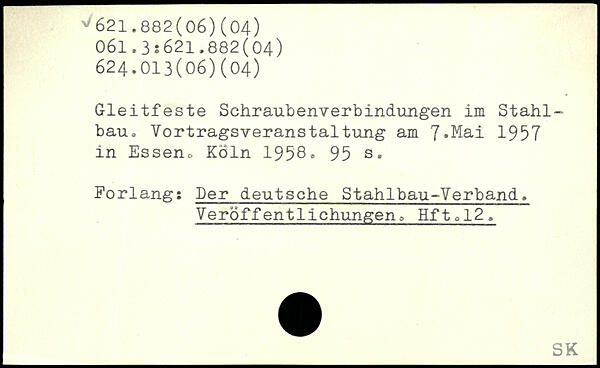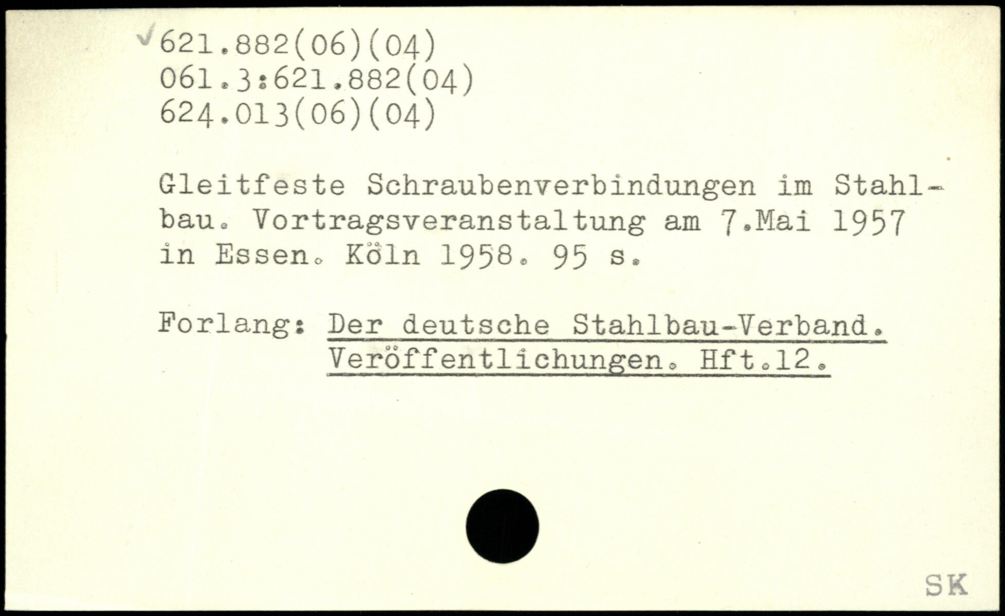 Gleitfeste Sehraubenverbindungen im Stahlbau. Vortragsveranstaltung am 7,Mai 1957 in Essen