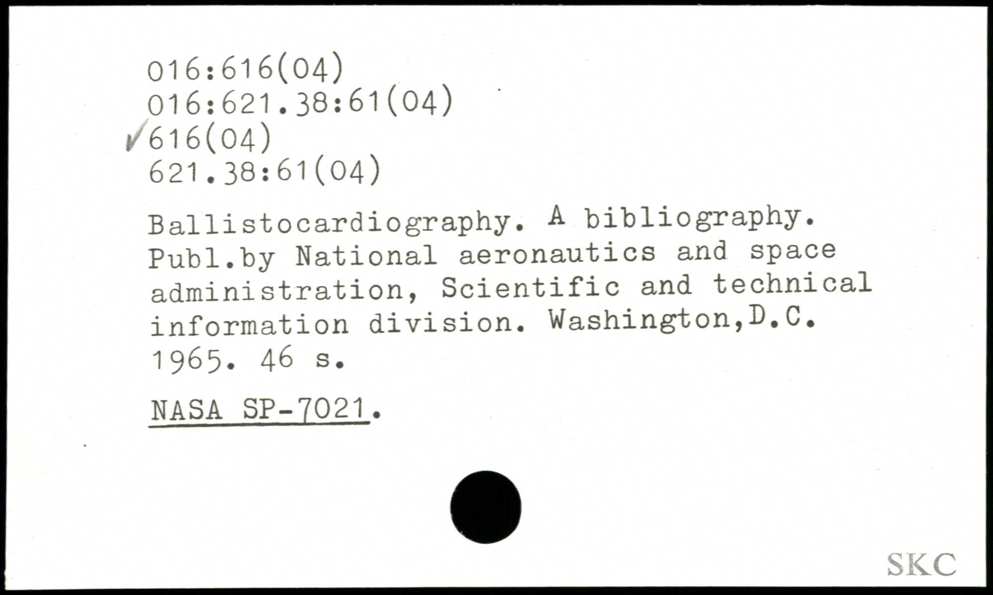 Ballistocardiography. A bibliography.