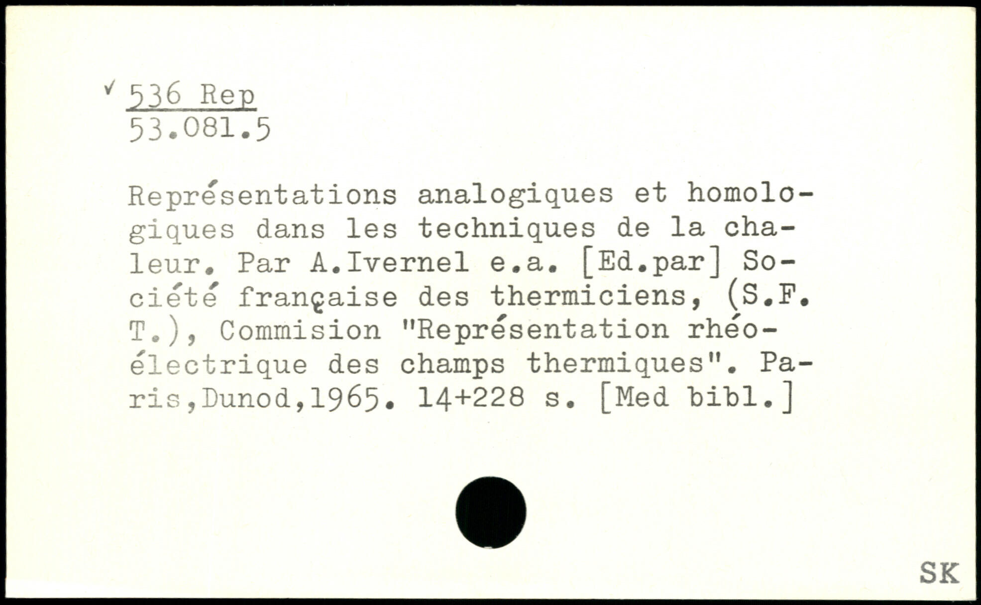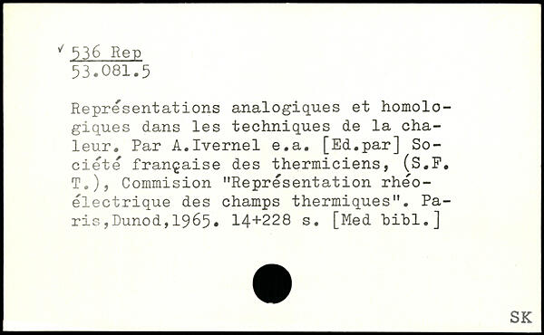 Representations analogiques et homolo-giques dans les techniques de la chaleur. Par A.Ivernel e.a. [Ed.par] Société française des thermiciens, (S.F. T.), Commision "Représentation rhéo-électrique des champs thermiques".