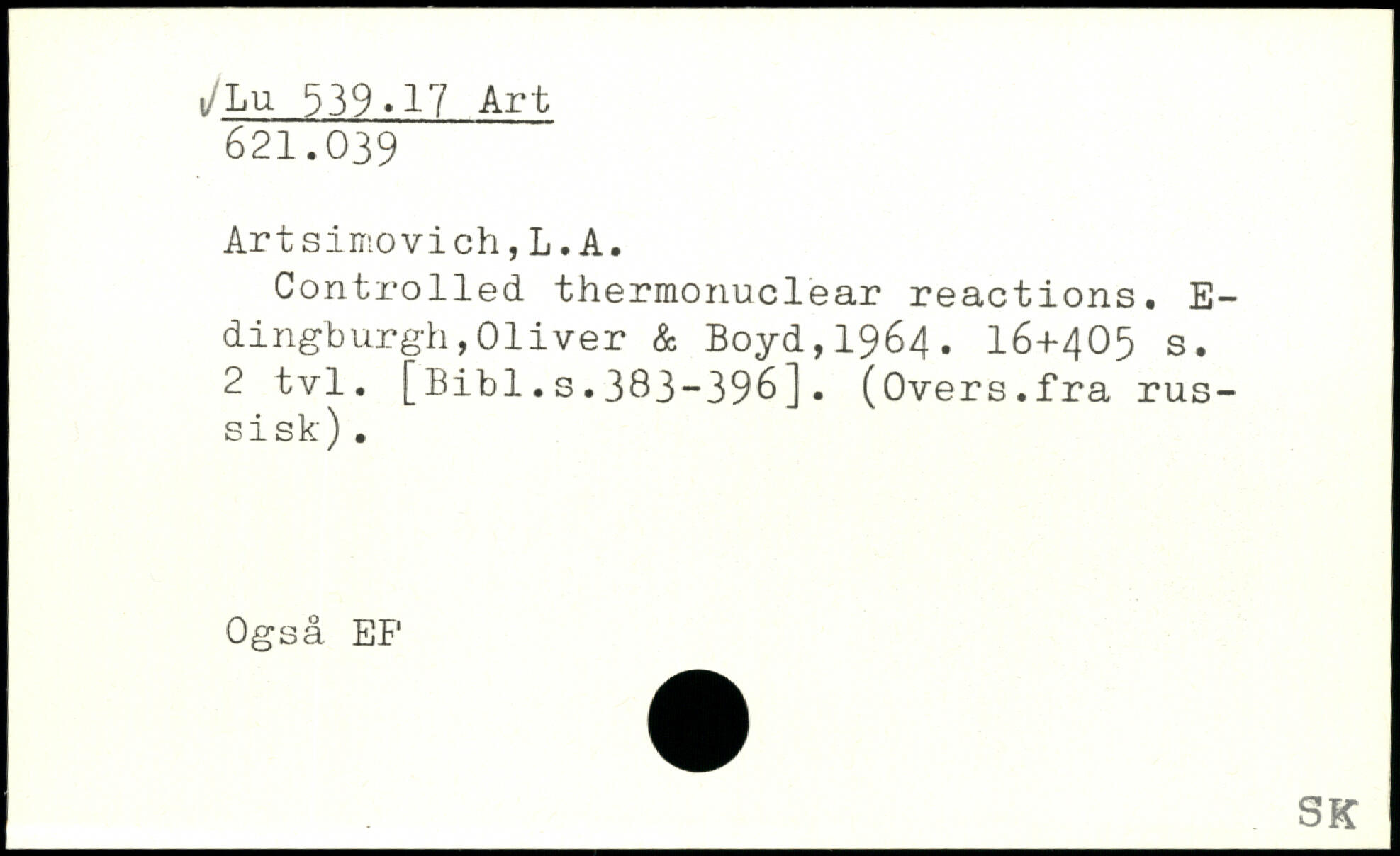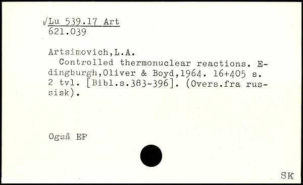 Controlled thermonuclear reactions. E-dingburgh,01iver & Boyd,1964.