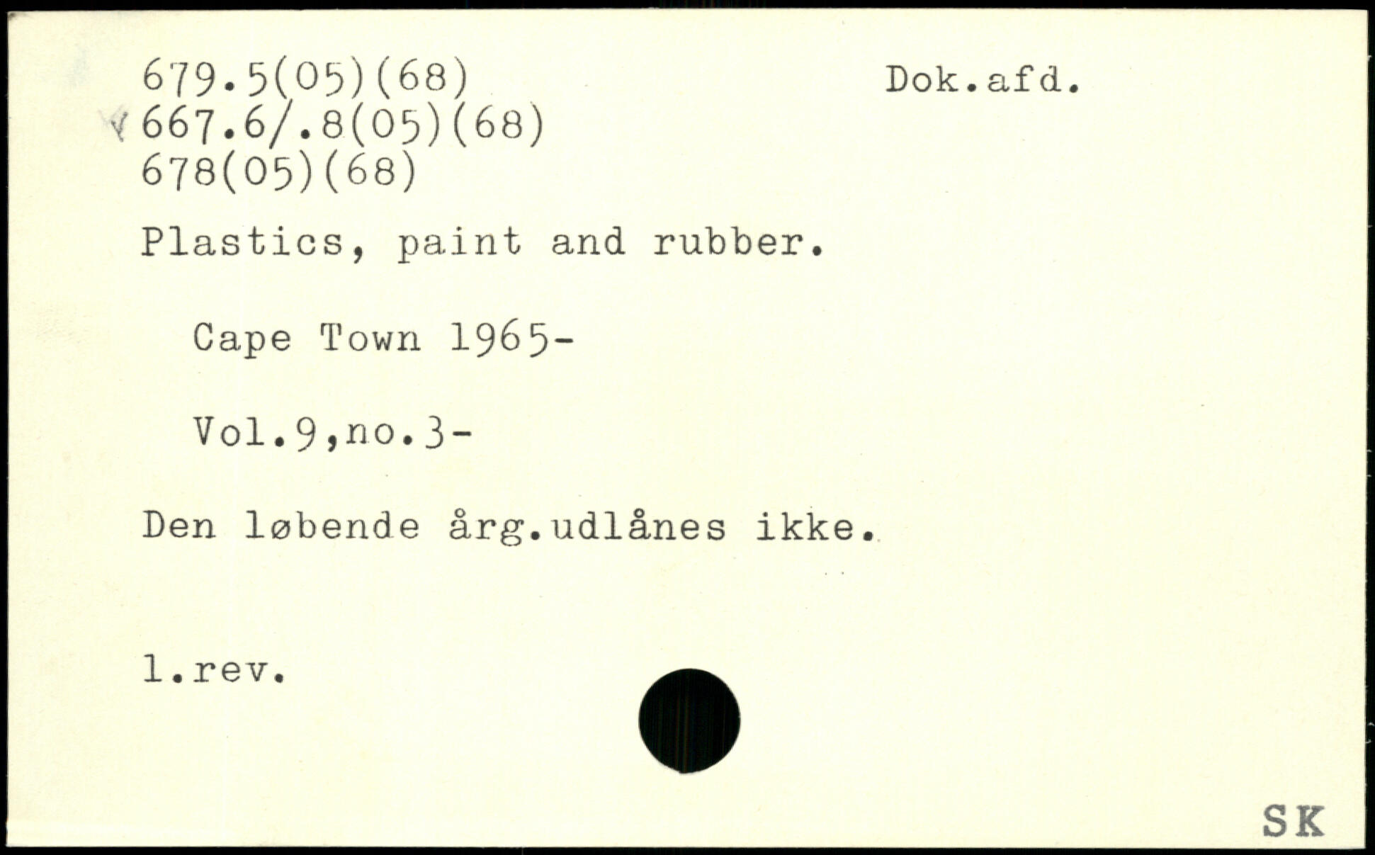 Plastics, paint and rubber. Cape Town 1965-