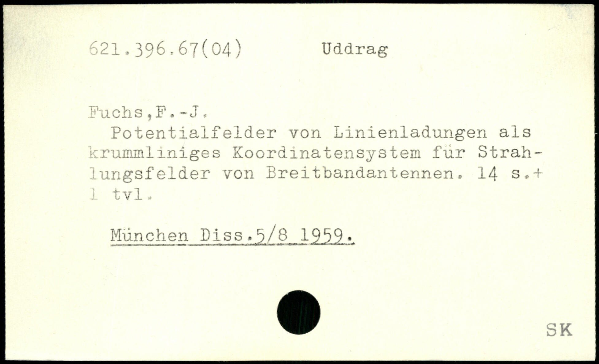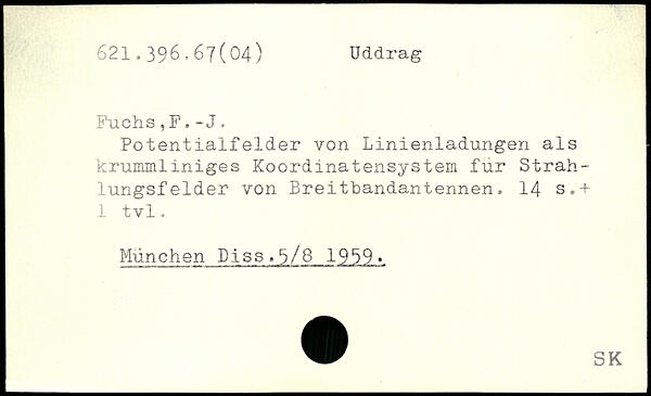 Potentialfelder von Linienladungen als krummliniges Koordinatensystem für Strah-lungsfelder von Breitbandantennen.