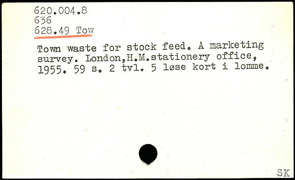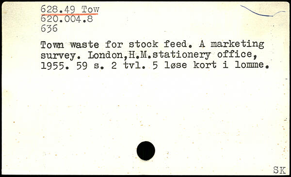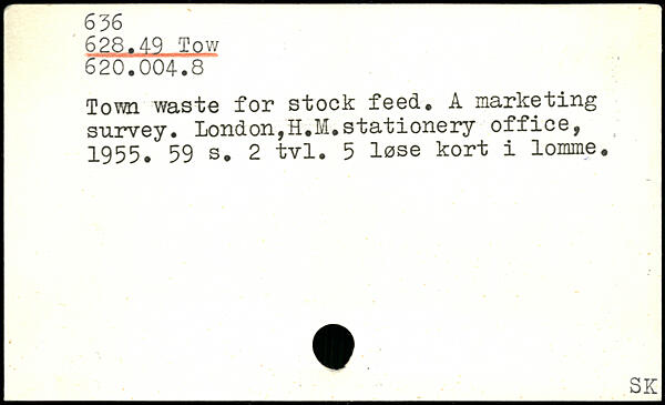 Town waste for stock feed. A marketing survey. London,H.M.stationery office, 1955