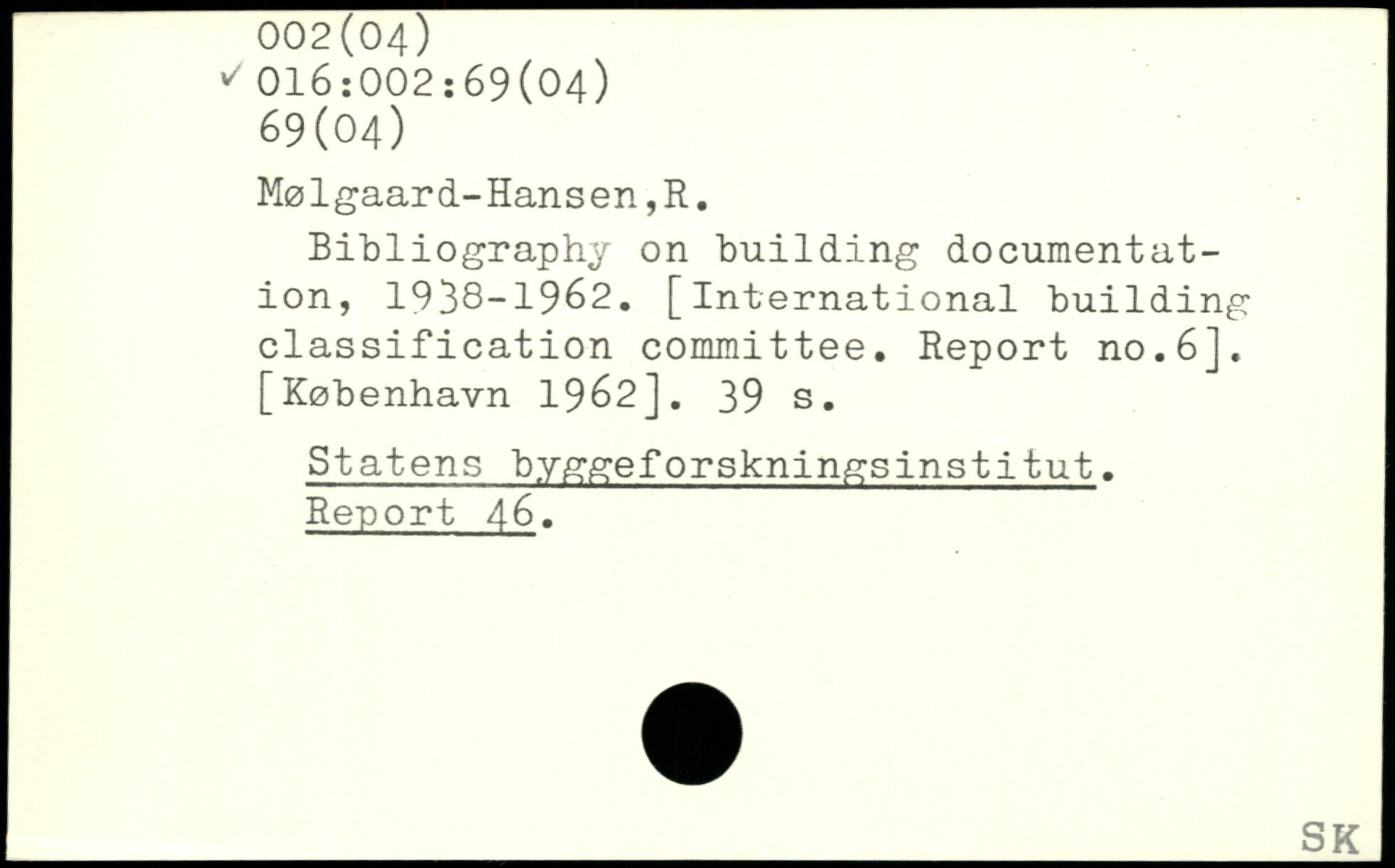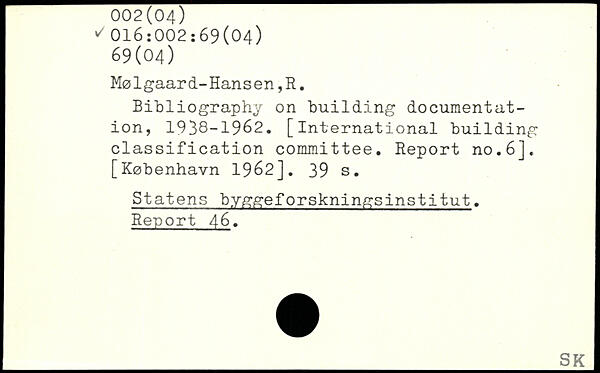 Bibliography on building documentation, 1938-1962. [International building classification committee. Report no.6]