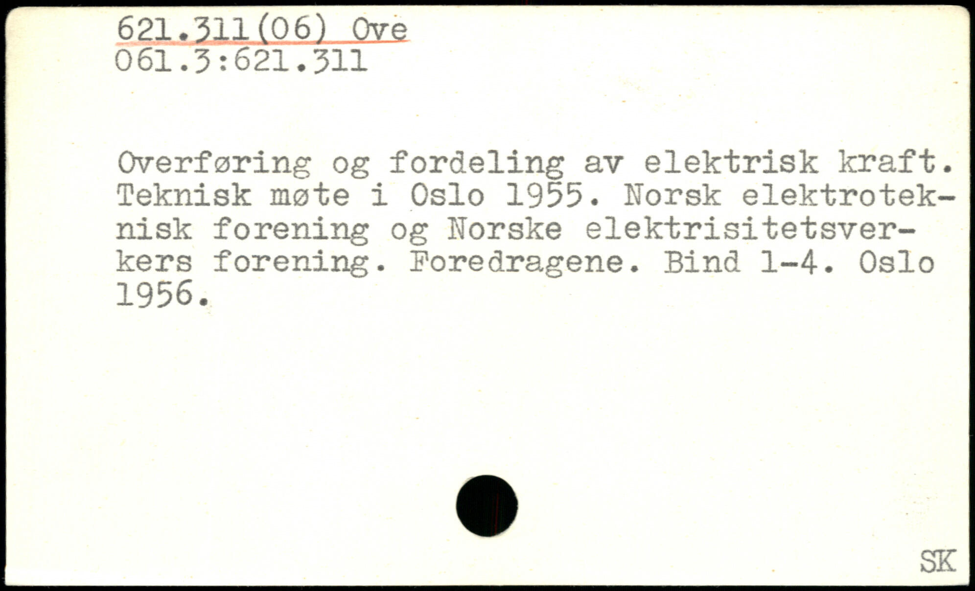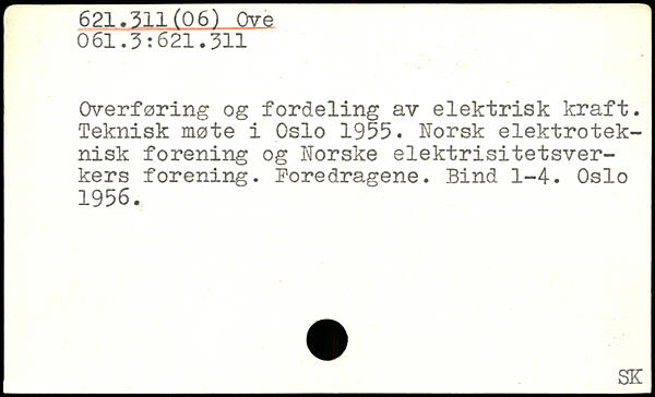 Overføring og fordeling av elektrisk kraft. Teknisk møte i Oslo 1955. Norsk elektroteknisk forening og Norske elektrisitetsver-kers forening. Foredragene. Bind 1-4. Oslo 1956.