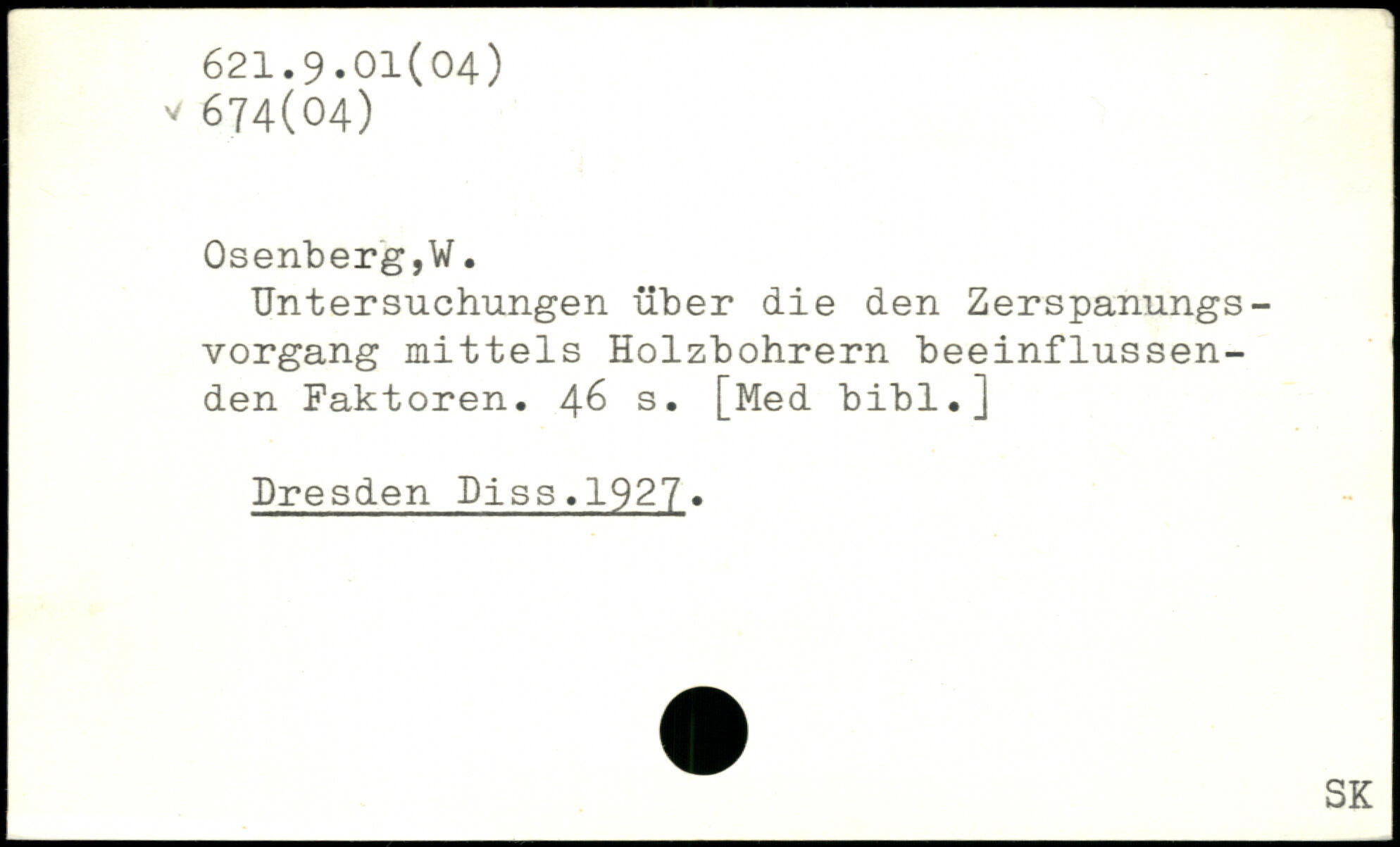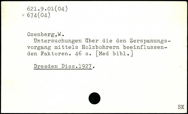 Untersuchungen über die den Zerspanungs-vorgang mittels Holzbohrern beeinflussenden Faktoren.