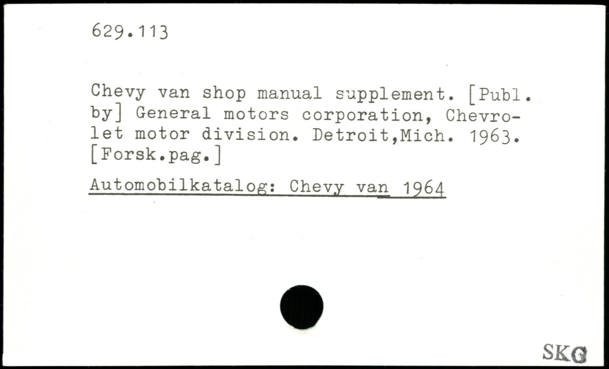 Chevy van shop manual supplement.