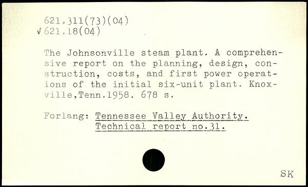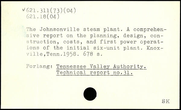 The Johnsonville steam plant. A comprehensive report on the planning, design, construction, costs, and first power operations of the initial six-unit plant. Knoxville, Tenn.1958.