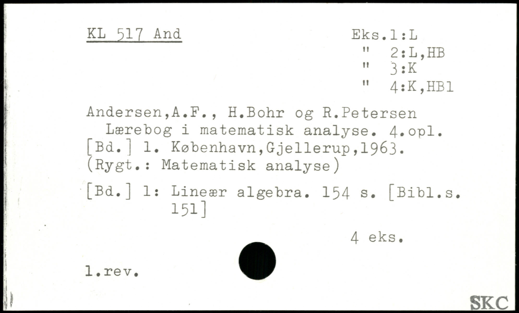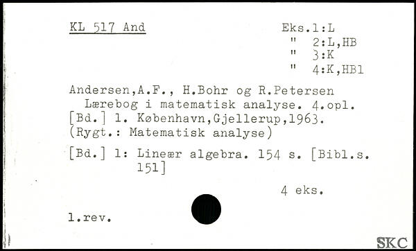 [. " 4:K,HB1 Andersen,A.F. , H.Bohr og R.Petersen Lærebog i matematisk analyse. 4,opl.