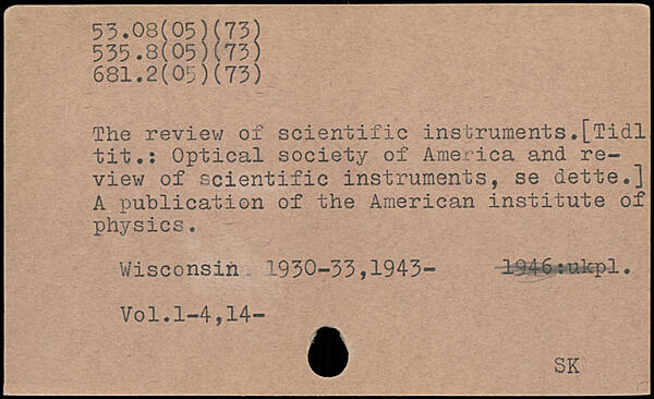 The review of scientific instruments.[Tidl tit.: Optical society of America and review of scientific instruments, se dette.] A publication of the American institute of physics. Wisconsin 1930-33.1943-