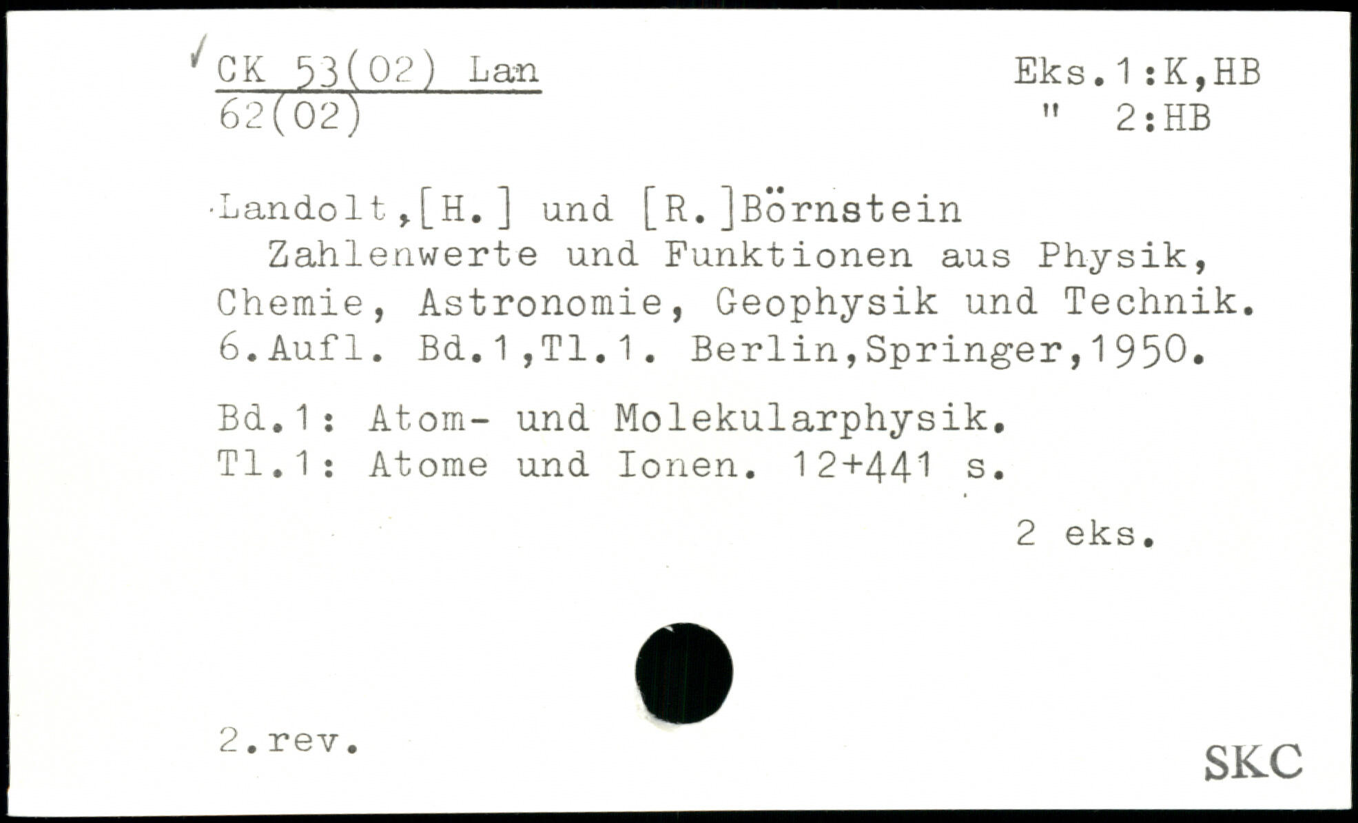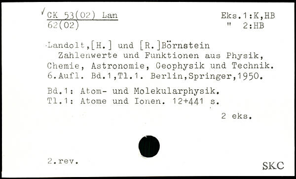 ■Landolt ,[H. ] und [R.Jßörnstein Zahlenwerte und Funktionen aus Physik, Chemie, Astronomie, Geophysik und Technik.