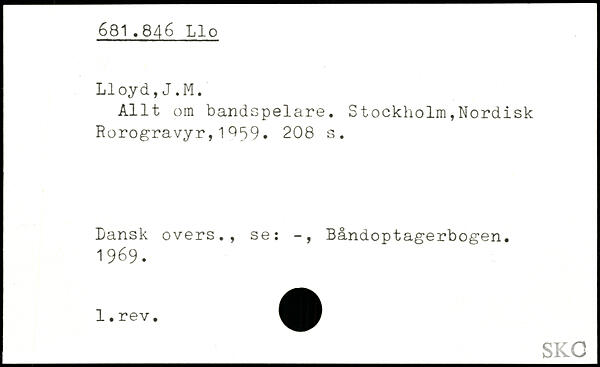 Allt om bandspelare. Stockholm,Nordisk Rorogravyr,1Q89.