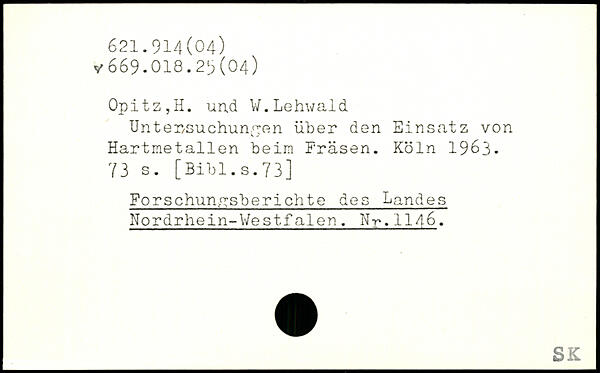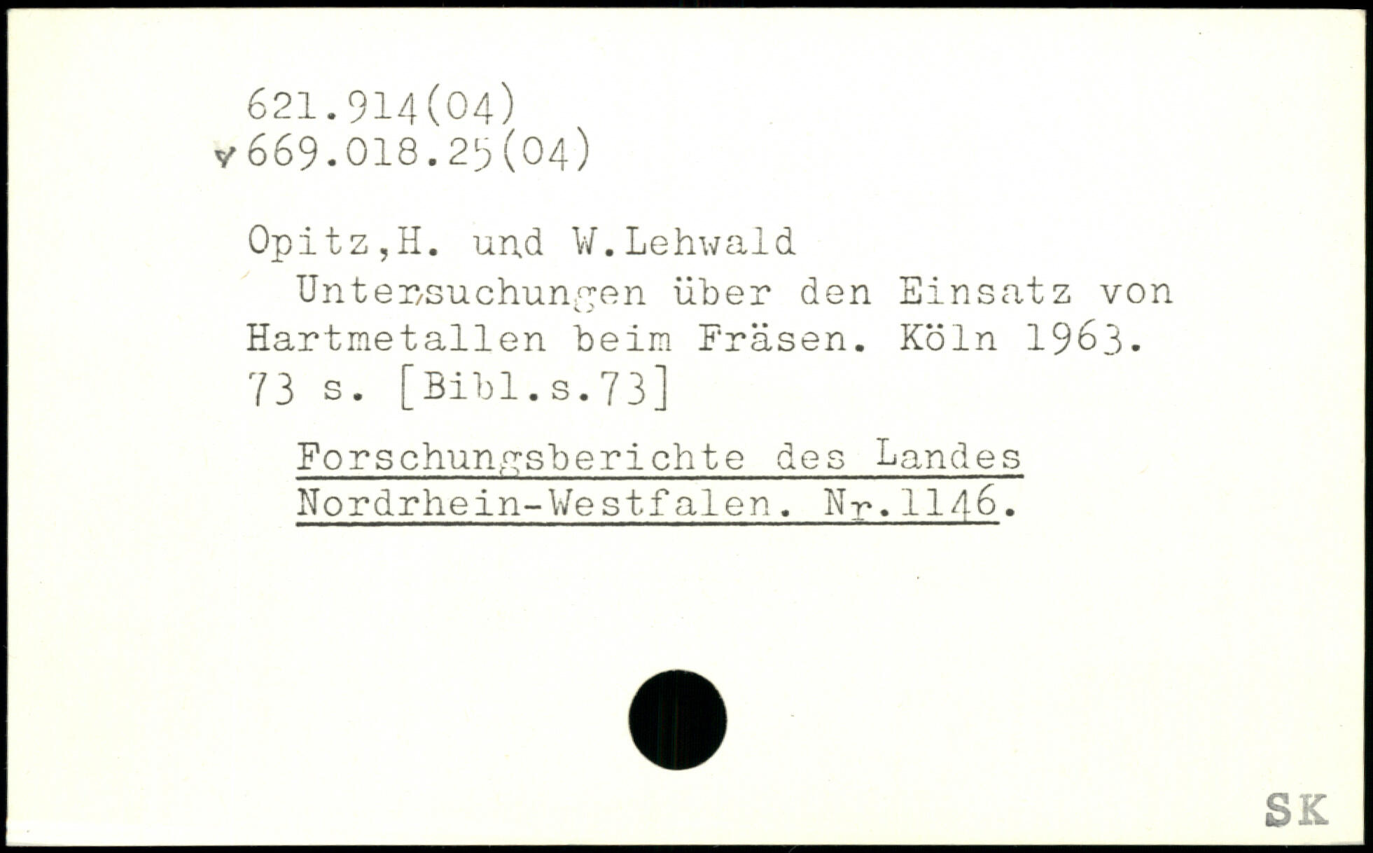 0pitz,H. un,d W.Lehwald Unter/Suchun^en über den Einsatz von Hartmetallen beim Fräsen.