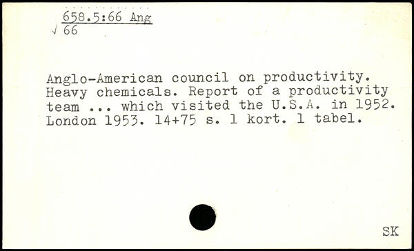 Anglo-American council on productivity. Heavy chemicals. Report of a productivity team ... which visited the U.S.A. in 1952.