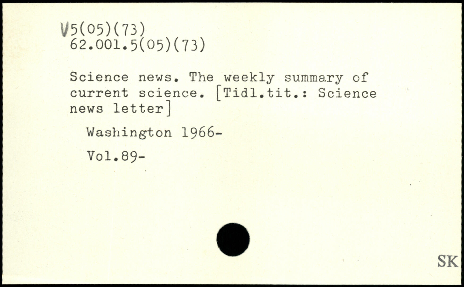 Science news. The weekly summary of current science. [Tidl.tit.: Science news letter]