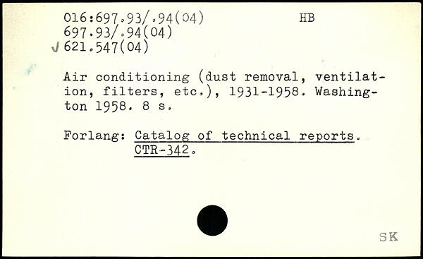 Air conditioning (dust removal, ventilation, filters, etc,), 1931-1958.