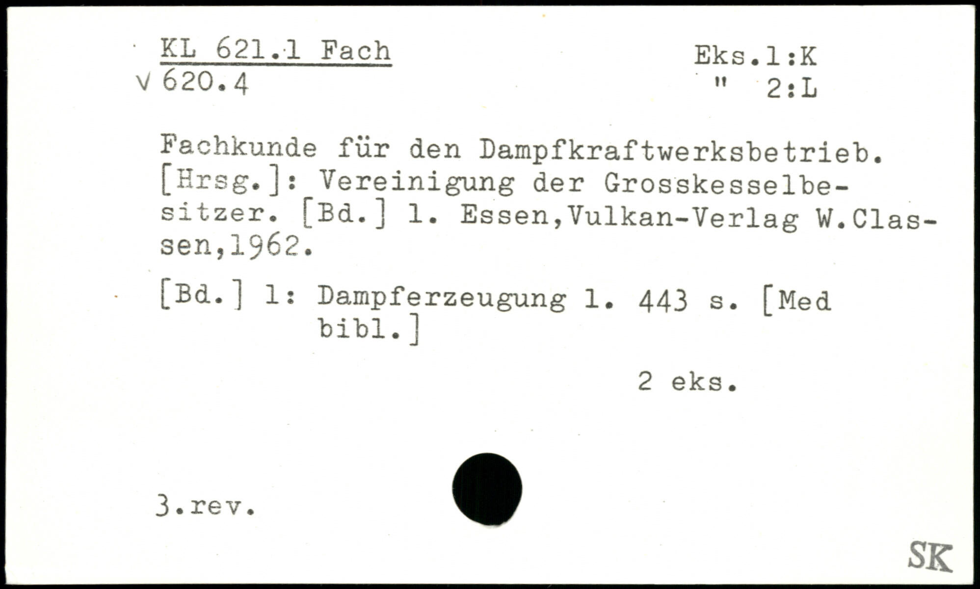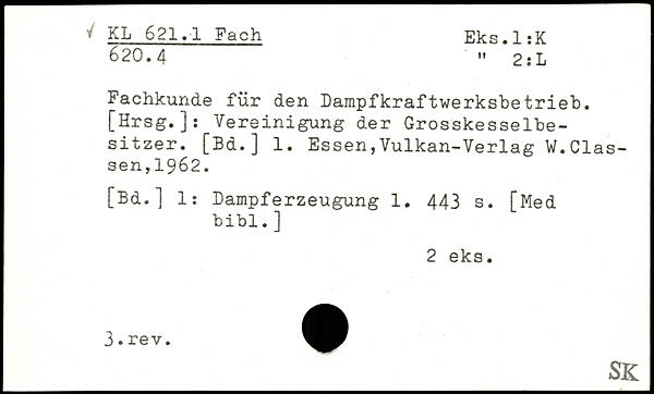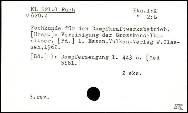 Fachkunde für den Dampfkraftwerksbetrieb. [Hrsg.]: Vereinigung der Grosskesselbesitzer. [Bd.] 1. Essen,Vulkan-Verlag W.Clas-sen,1962. [Bd.] 1: Dampferzeugung 1.