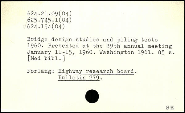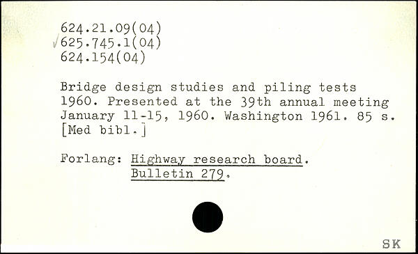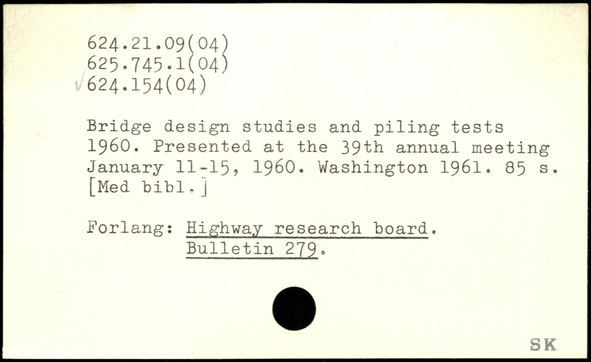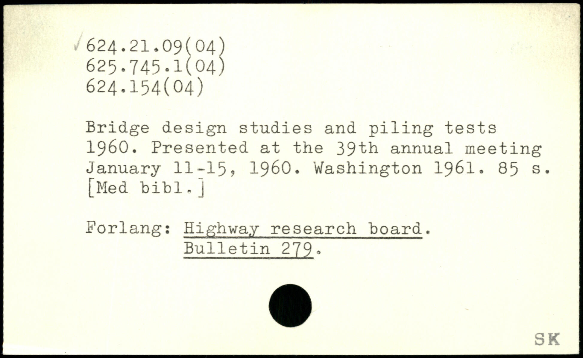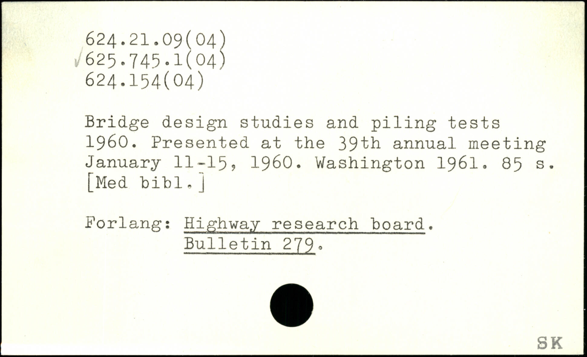 Bridge design studies and piling tests 1960. Presented at the 39th annual meeting January 11-15? 1960.