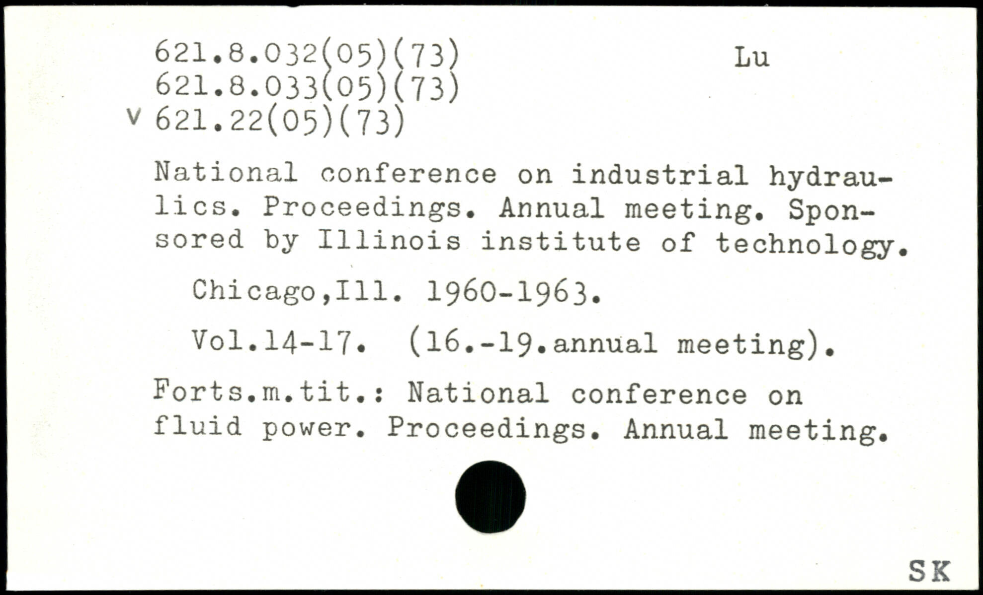 National conference on industrial hydraulics. Proceedings. Annual meeting. Sponsored by 1111nois institute of technology. Chicago,111. 1960-1963.