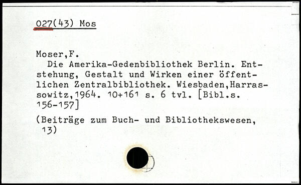 Die Amerika-Gedenbibliothek Berlin. Entstehung, Gestalt und Wirken einer öffentlichen Zentralbibliothek.