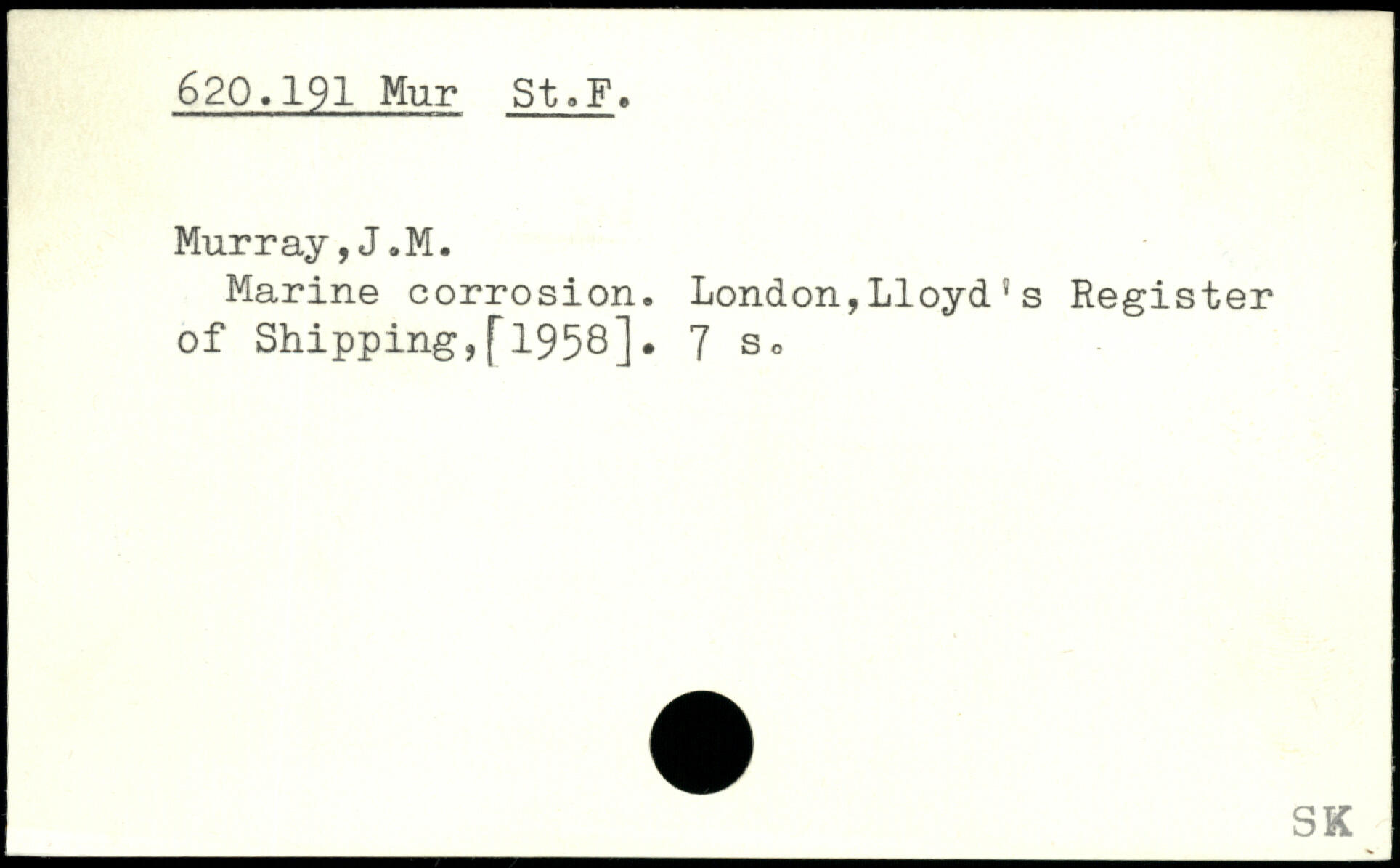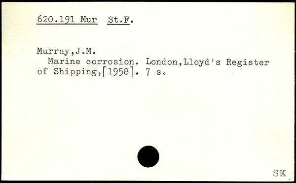Marine corrosion. London,Lloyd}s Register of Shipping,[1958].
