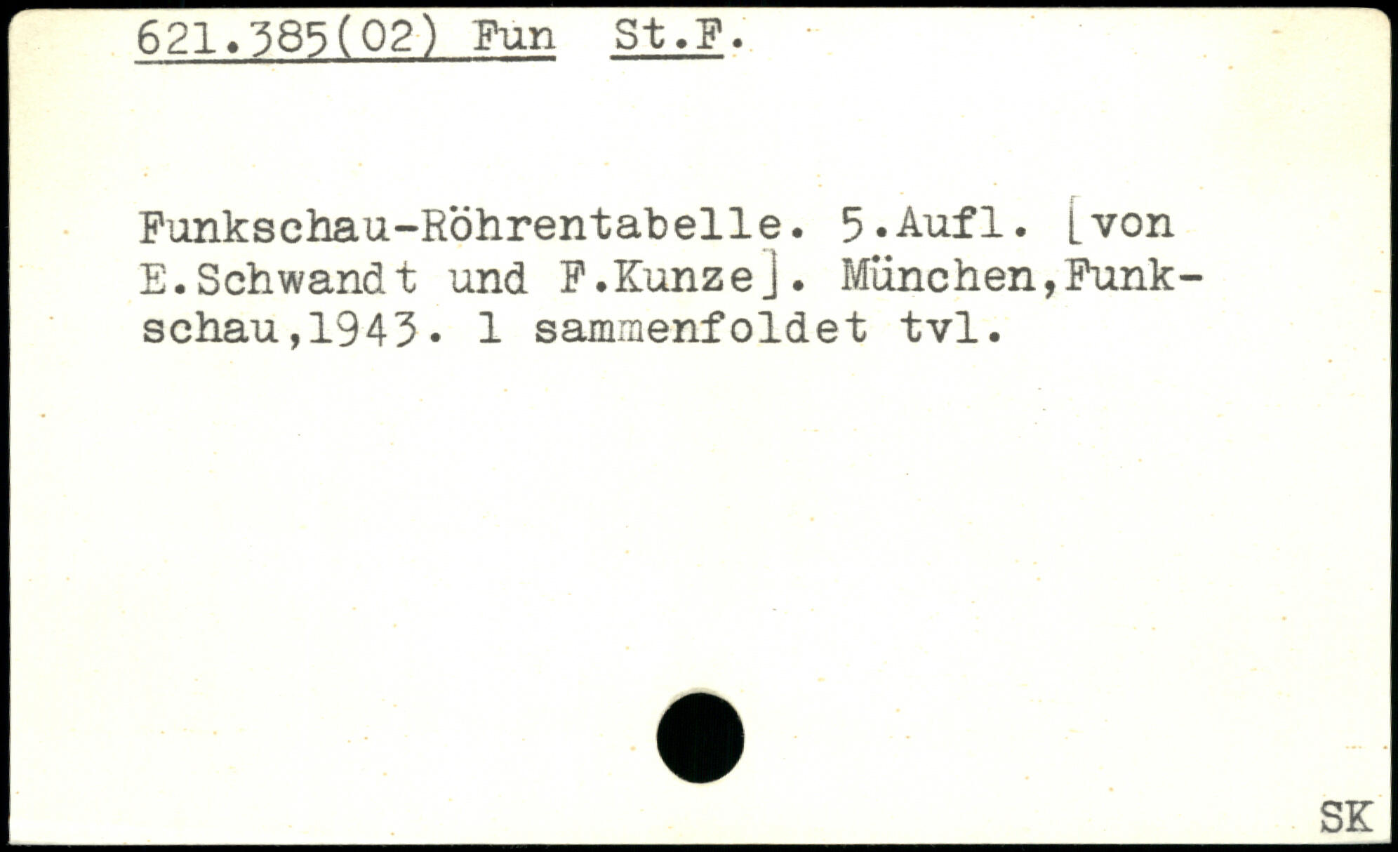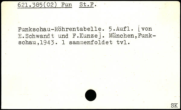 Funkschau-Röhrentabelle. 5-Aufl. [von E.Schwandt und F.Kunze].