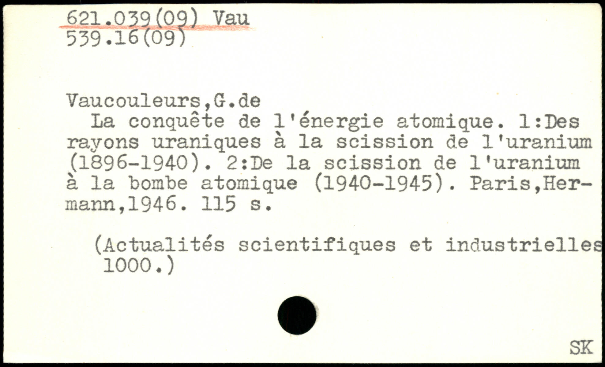La conquête de l'énergie atomique. l:Des rayons uraniques à la scission de l'uranium (1896-1940). 2sLe la scission de l'uranium à la bombe atomique (1940-1945).